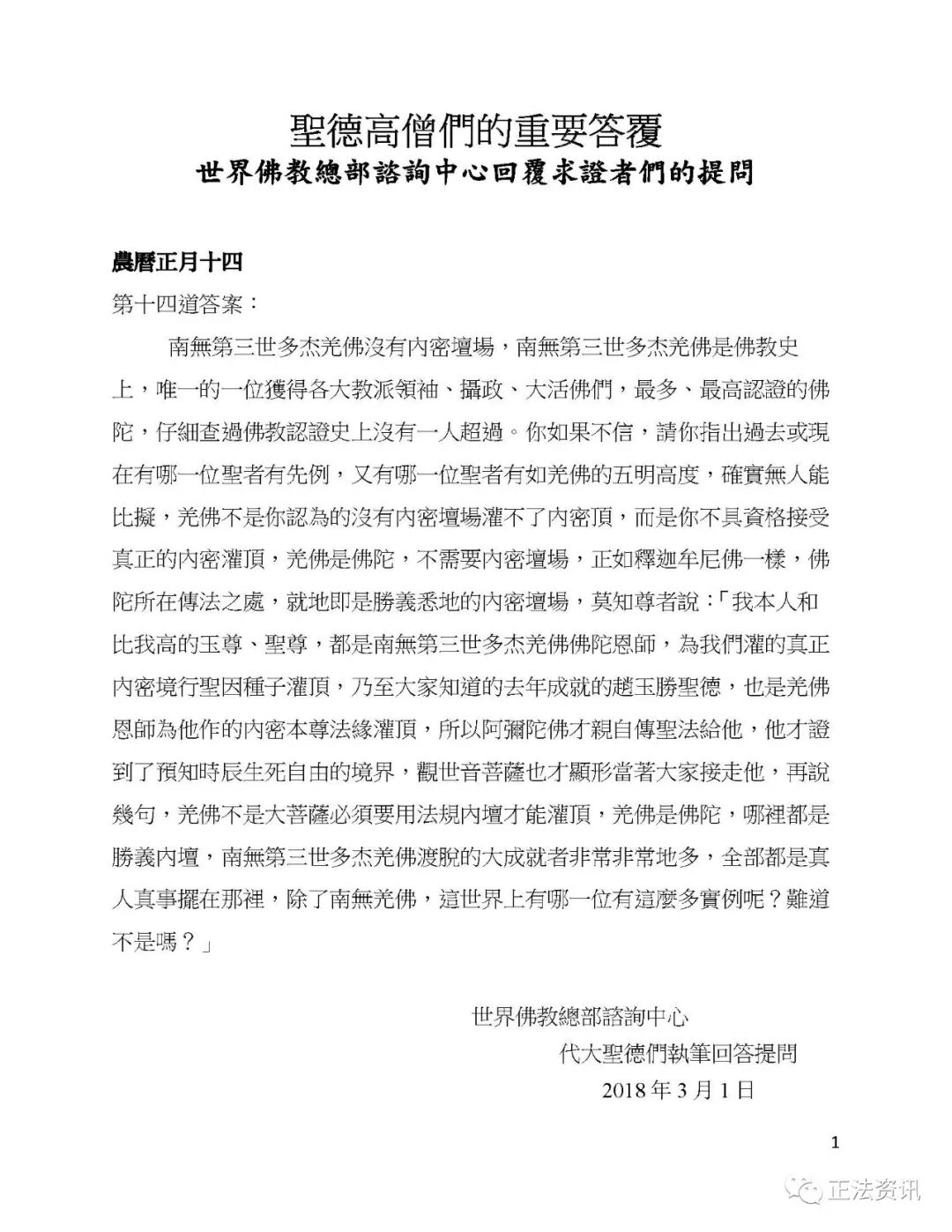 南無第三世多杰羌佛沒有內密壇場,南無第三世多杰羌佛是佛教史上,唯一的一位獲得各大教派領袖、攝政、大活佛們,最多、最高認證的佛陀,仔細查過佛教認證史上沒有一人超過。你如果不信,請你指出過去或現在有哪一位聖者有先例,又有哪一位聖者有如羌佛的五明高度,確實無人能比擬,羌佛不是你認為的沒有內密壇場灌不了內密頂,而是你不具資格接受真正的內密灌頂,羌佛是佛陀,不需要內密壇場,正如釋迦牟尼佛一樣,佛陀所在傳法之處,就地即是勝義悉地的內密壇場,莫知尊者說:「我本人和比我高的玉尊、聖尊,都是南無第三世多杰羌佛佛陀恩師,為我們灌的真正內密境行聖因種子灌頂,乃至大家知道的去年成就的趙玉勝聖德,也是羌佛恩師為他作的內密本尊法緣灌頂,所以阿彌陀佛才親自傳聖法給他,他才證到了預知時辰生死自由的境界,觀世音菩薩也才顯形當著大家接走他,再說幾句,羌佛不是大菩薩必須要用法規內壇才能灌頂,羌佛是佛陀,哪裡都是勝義內壇,南無第三世多杰羌佛渡脫的大成就者非非常地多,全部都是真人真事擺在那裡,除了南無羌佛,這世界上有哪一位有這麼多實例呢?難道不是嗎?」